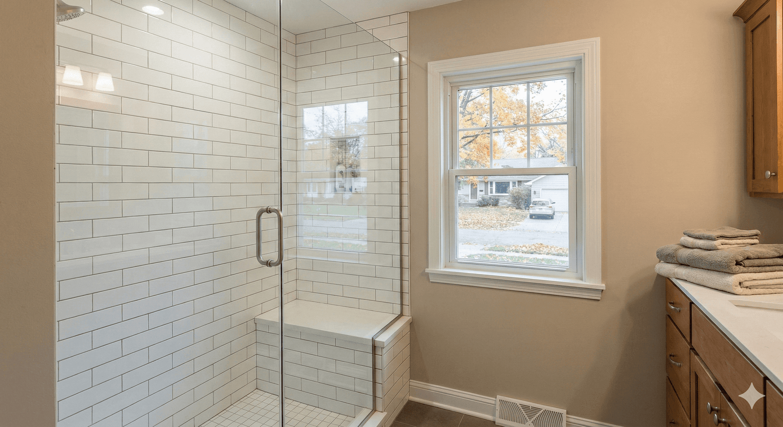A: For small bathrooms, we typically recommend corner shower units to maximize floor space, neo-angle showers that fit in tight corners, walk-in showers without bulky tubs, clear glass enclosures to make the space feel larger, or tub-to-shower conversions to gain showering room. We’ll evaluate your bathroom layout and help you choose the most space-efficient option that meets your needs.